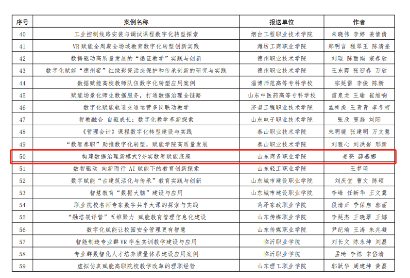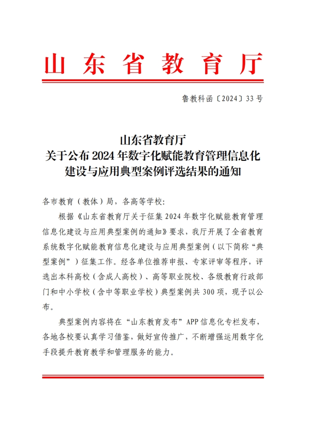 近日,我校围绕数据赋能管理服务和教学发展规划,构建信息化管理闭环体系,编写了《构建数据治理新模式 夯实数智赋能底座》应用案例,成功获评山东省教育厅公布的2024年数字化赋能教育管理信息化建设与应用典型案例。