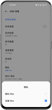 1) 点击“设置”--“WLAN”-- 长按已连接的无线 WLAN 信号,选择 “修改网络” --“隐私”--选择“使用设备 MAC”--保存。